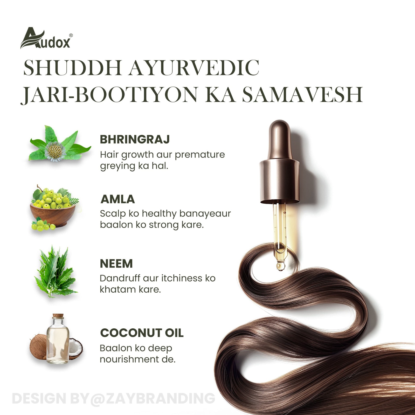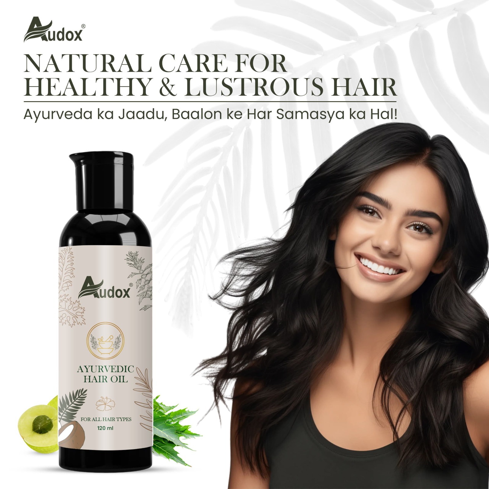 Audox Ayurvedic Hair Oil is a carefully crafted formula inspired by ancient Ayurvedic wisdom, made using authentic herbs and traditional preparation methods. Designed for all hair types, this oil penetrates deeply to nourish, repair, and rejuvenate your scalp and hair. With a blend of over 25 Ayurvedic ingredients, it delivers comprehensive care for stronger, shinier, and healthier hair.